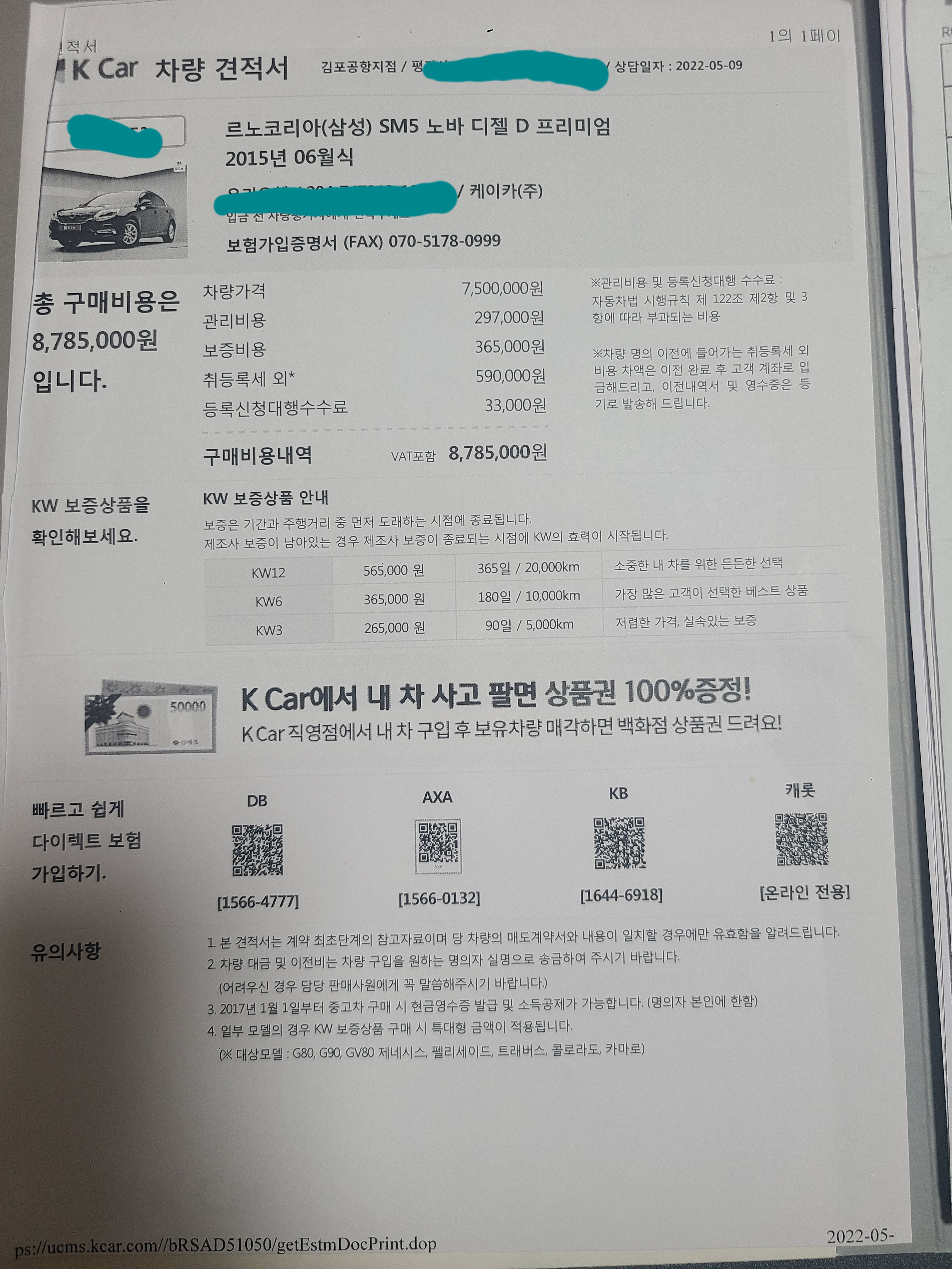 안녕하세요! 저번글에서 SM5디젤 엔진오일 교체에 대해 포스팅을 했었는데요! 이번 글에서는 그때 같이 진행했던 예열플러그 교체 후기를 포스팅하고자 합니다. 제가 예열플러그 교체를 하고 바로 주행했을 때 문제가 하나 발생했었습니다...ㅜㅜ 처음 주행 시 약간의 이상함을 느꼈지만 대수롭지 않게 여기고 주행했고, 결국 고속도로에서 엔진 경고등이 떠서 다시 정비소로 향했었습니다..ㅜㅜ 이러한 내용들은 아래 본문에 자세히 작성해보도록 하겠습니다! 글의 순서는 아래와 같습니다. 1. 예열플러그 교체 이유 2. 예열플러그 교체 가격 및 정비 시간 3. 예열플러그 교체 후 발생한 문제 4. 예열플러그 교체 후 1. 예열플러그 교체 이유 처음 SM5 디젤 차량을 중고로 구매하고 르노삼성 정비소에서 점검을 받았습니다. 점..