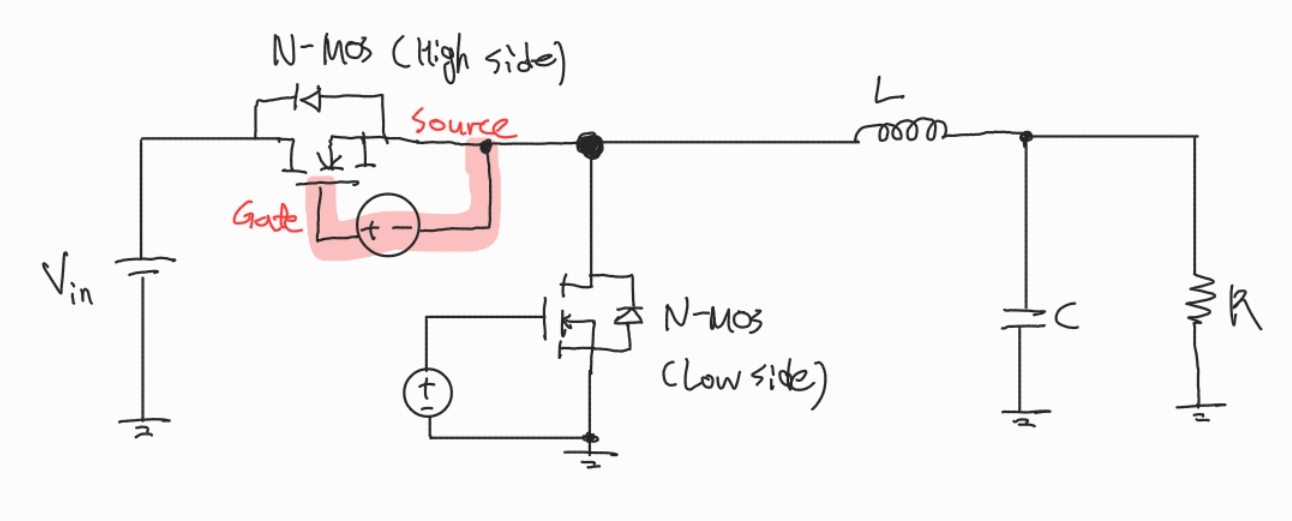 안녕하세요! 이번에는 제가 업무를 수행하다가 공부한 부트스트랩 회로(Boot strap circuit)에 대하여 작성하고자 합니다. 글의 순서는 아래와 같습니다! 1. 부트스트랩이란? 2. 동작 원리 3. 결론 1. 부트스트랩이란? 부트스트랩(Bootstrap)회로는 출력 스위치의 상층(High side)에 있는 FET의 Gate-source에 전원을 인가해주기 위해 사용되는 회로 입니다. 아래 사진에서 볼 수 있듯이 High side FET의 Gate-Source에 전압을 인가하기 위해서는 Source 단보다 Gate의 전압이 높아야 합니다. 일반적으로 우리가 알고 있는 FET의 Gate-Source단 중 Source가 GND인 것은 Low side의 것 입니다. 그러면 High side에 Source..